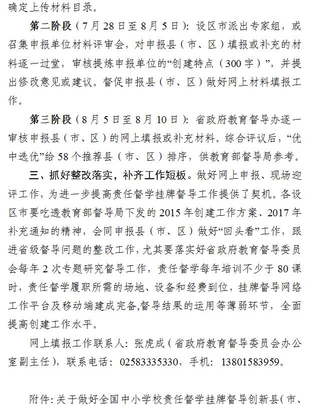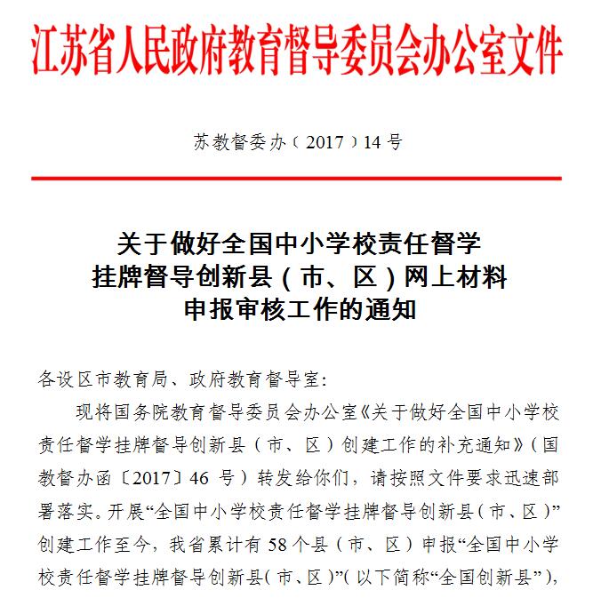 关于做好申报全国中小学校责任督学挂牌督导创新县(市、区)网上材料申报审核工作的通知